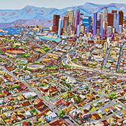 Susan Logoreci’s colored pencil drawings deal with themes of uncertainty and optimism within our cities. Recently her drawings were recreated into mosaic tile and installed in the Sepulveda station on the light rail, Los Angeles Metro Expo Line. They are also in several collections including the US State Department, Citi National Bank, and Creative Artist's Agency. She received a BFA from the San Francisco Art Institute and an MFA from California State University, Long Beach.